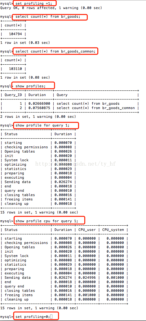 set profiling=1;