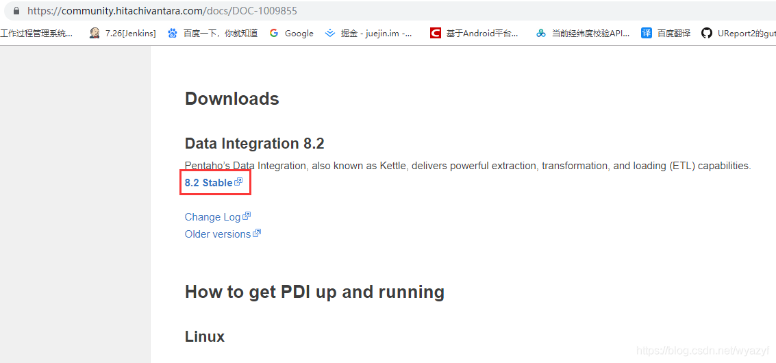 2、下载kettle8.2发布版工具,地址:https://community.hitachivantara.com/docs/DOC-1009855,具体位置如下图