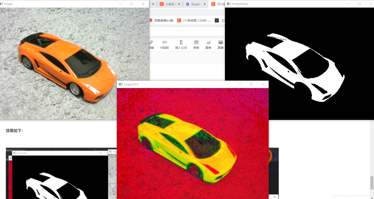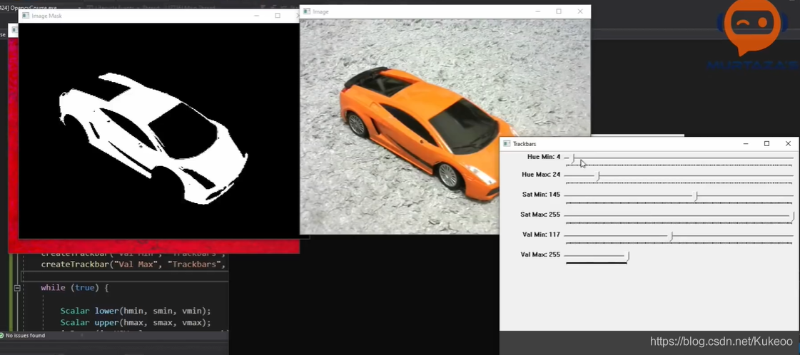 Scalar upper(hmax, smax, vmax);4.颜色检测,得到二值图像,并输出至蒙版