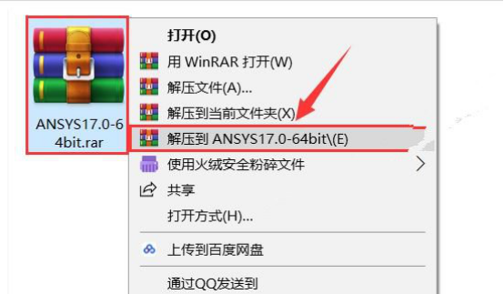 1.选中【ANSYS17.0-64bit】压缩包,鼠标右击选择【解压到ANSYS17.0-64bit】。