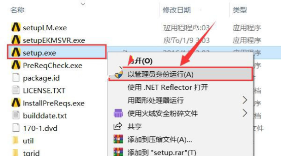 4.选中【setup】鼠标右击选择【以管理员身份运行】。