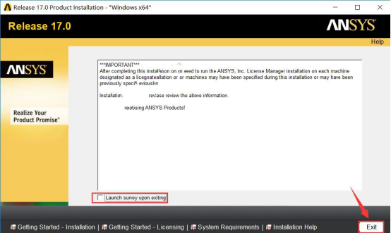 24.取消勾选【Launch survey upon exiting】点击【Exit】。