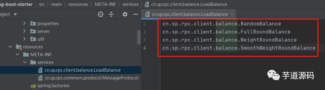 5.在自动配置类RpcAutoConfiguration根据配置选择对应的算法实现类