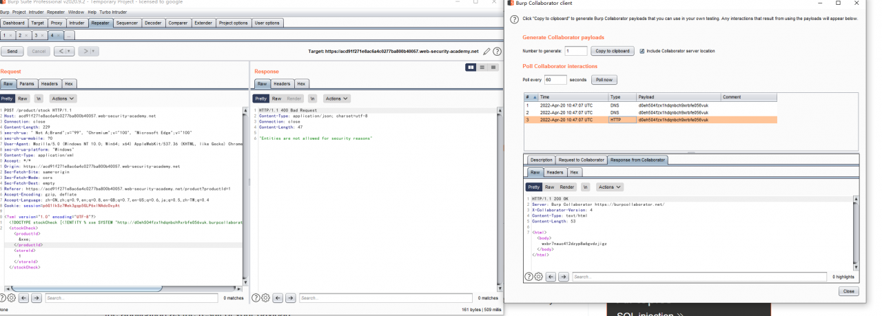 - 3.利用盲 XXE 将泄露数据外带;通过报错信息检索数据。