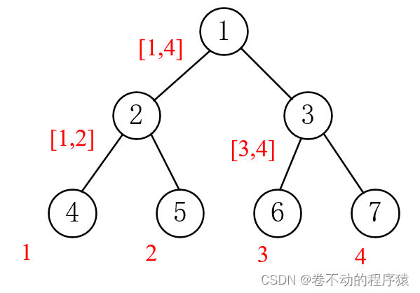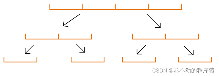 把一个大区间划分为两个小区间,然后把两个小区间分别划分为两个更小的区间,不断这样划分下去,直到区间内只有一个数据为止。 每个区间存放一个或者多个数据(比如:区间的和,区间的最大值,区间的最小值),以树的形式存放这些数据,则构成了一颗二叉树。 这种存放区间数据的二叉树就是线段树。