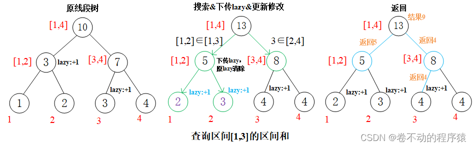 ·如果没有完全覆盖,且当前区间有lazy标记,先下传lazy标记到子区间,再清除当前区间的lazy标记;