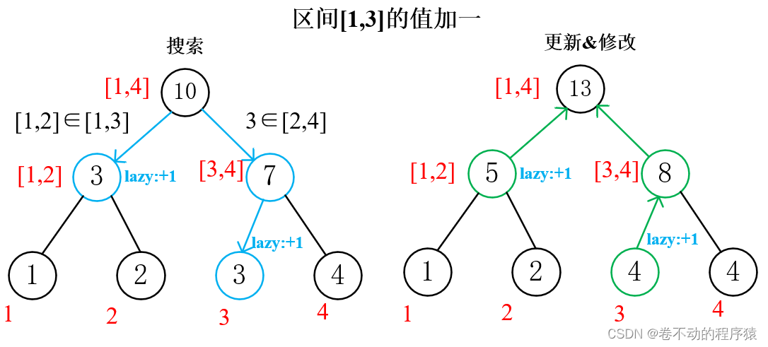 ·如果要修改的区间完全覆盖当前区间,则直接更新这个区间,打上lazy标记;