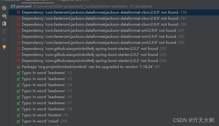 Idea导入一个工程后,发现依赖总有几个爆红,显示找不到依赖,可以有以下几个方法解决: