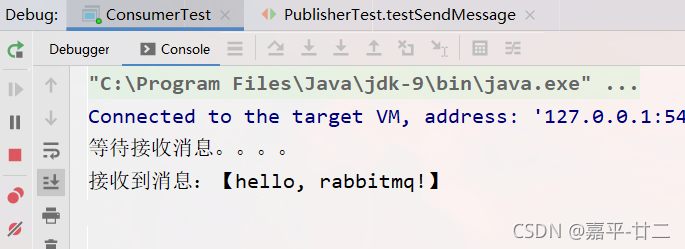 消费者接收到消息,输出到控制台后继续等待下一条消息。