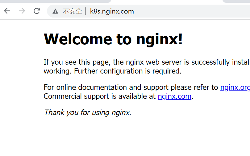 nginx-test-ingress <none> k8s.nginx.com 80 29h改下hosts文件浏览器上看下,奇迹发生了。