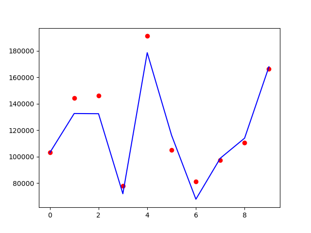 蓝色的线是预测值,红色的点是真实的值,可以看到预测效果还是不错的。本文源代码和数据文件,可以关注Python实用宝典公众号,后台回复:机器学习3 下载。