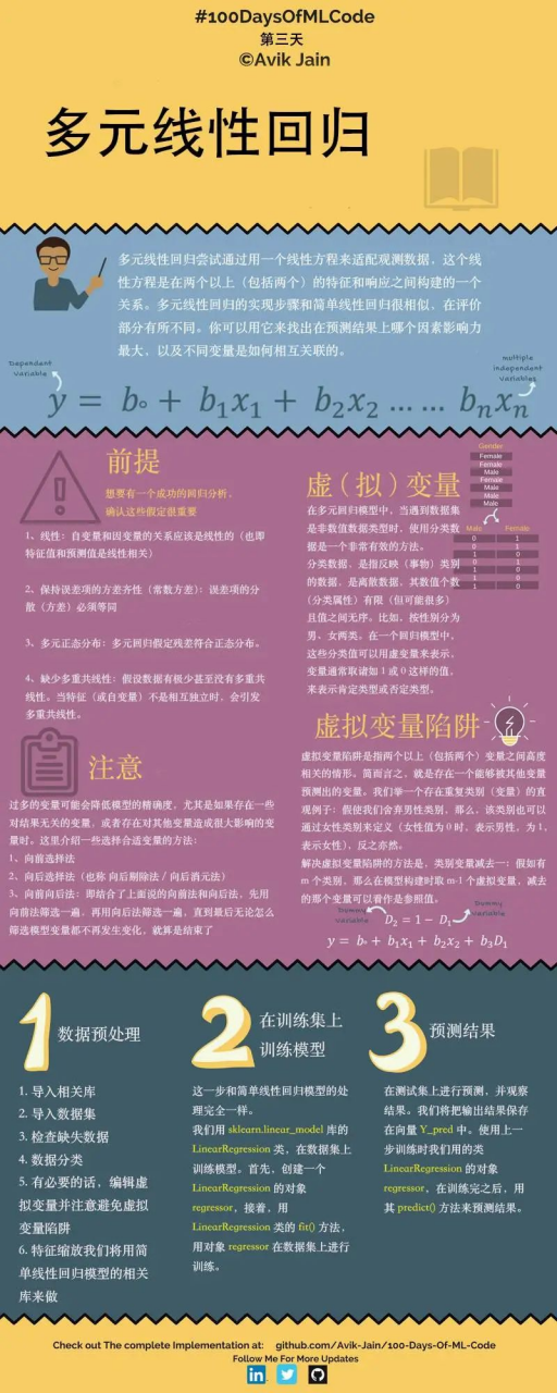 本文是机器学习100天学习计划的第三天,详细介绍了多元线性回归的原理和注意事项,并以预测企业利润为例进行实战演练。希望各位读者能耐心读下去。