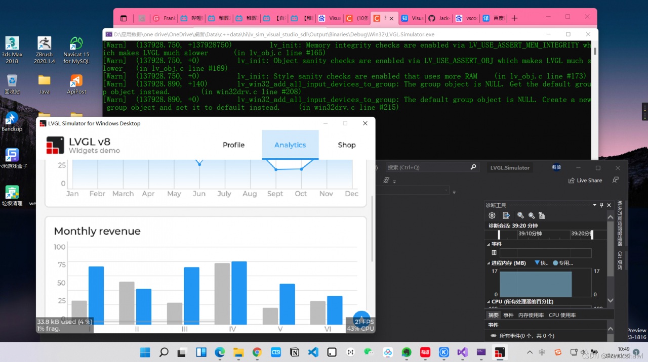 5.打个文件列表中的LVGL.Simulator.cpp,添加修改代码,大功告成!