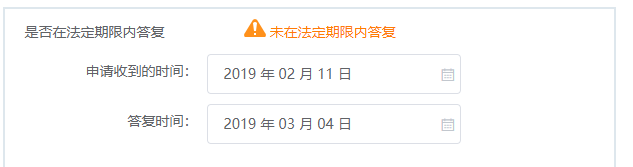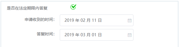 这里实际业务需要,申请收到时间答复时间必须相差15个工作日以内,提示正常。如果超过15个工作日就提示错误,见图: