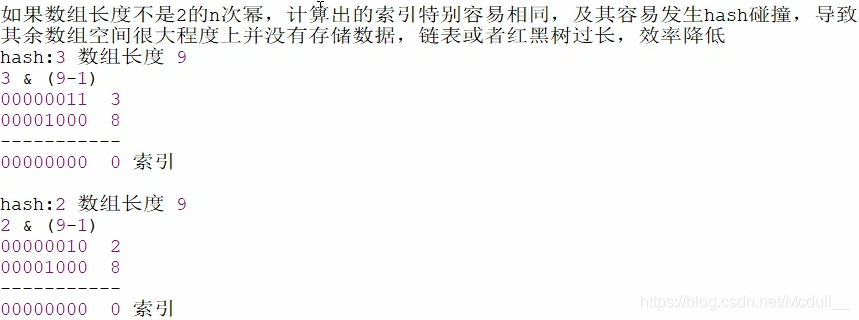 hash & (length - 1)所得到的数组下标相等(很容易出现哈希碰撞)。小结一下HashMap数组容量使用2的n次幂的原因: