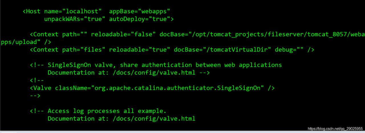 docBase=“/tomcatVirtualDir” :为文件存储的物理路径