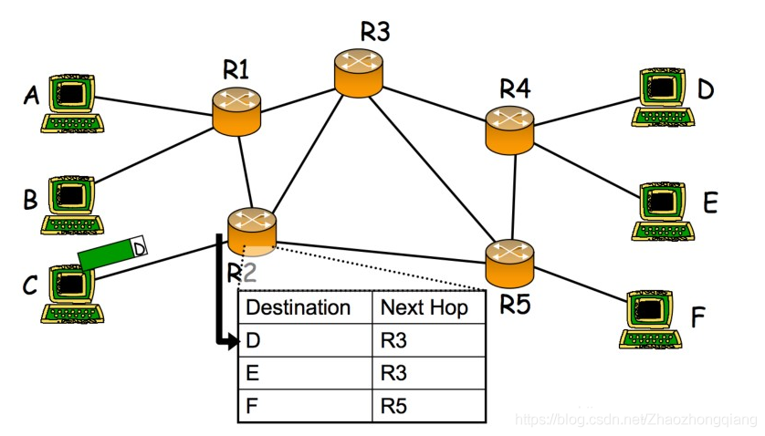 下一跳的路由器也按照这种方法处理分组,直到该分组到达终点为止。