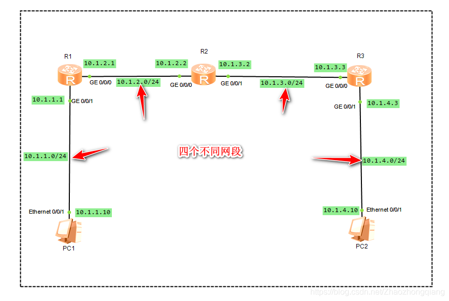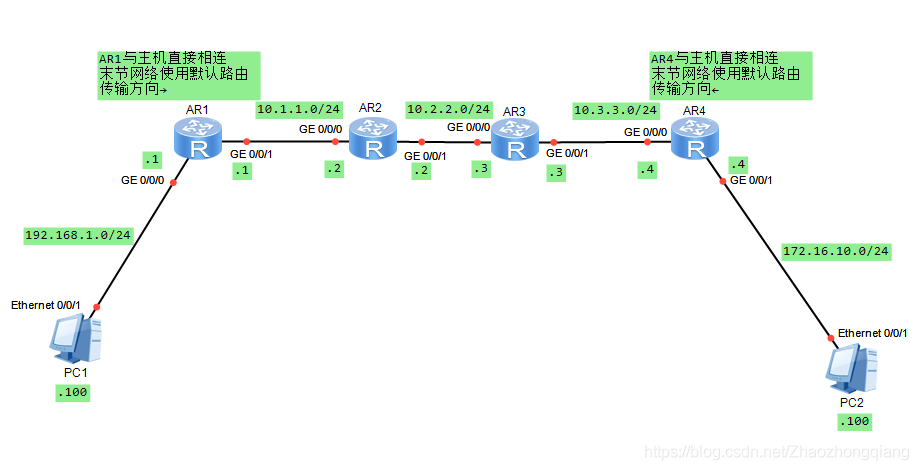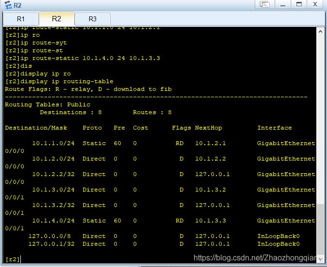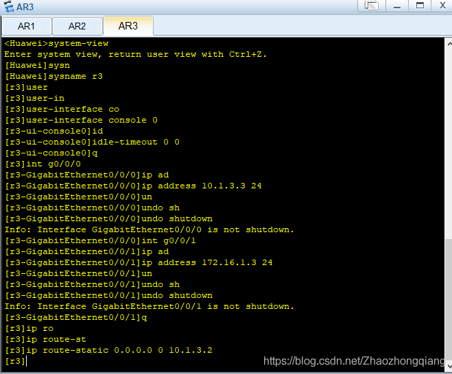 [r3]ip route-static 0.0.0.0 0 10.1.3.2