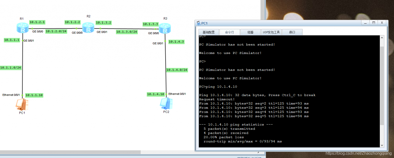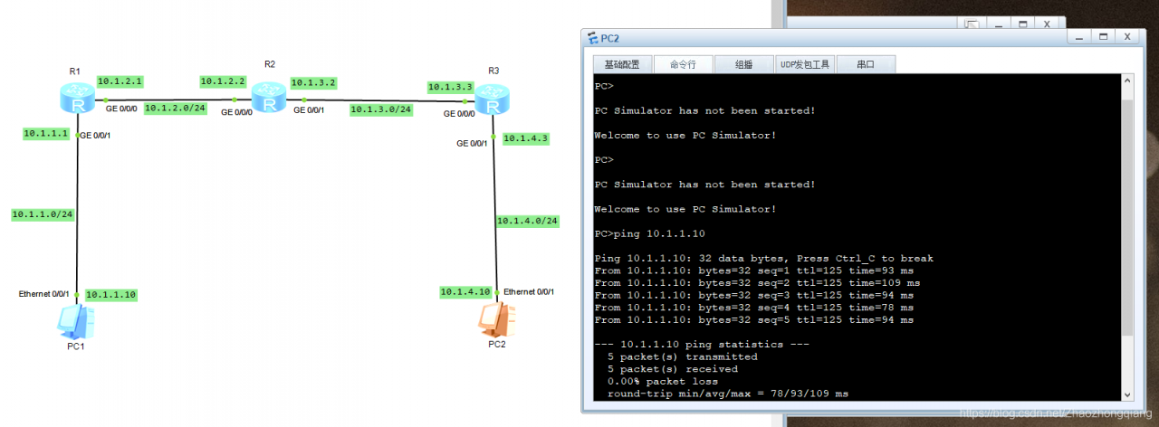 [r1-Ethernet2/0/0]ping 10.1.1.2