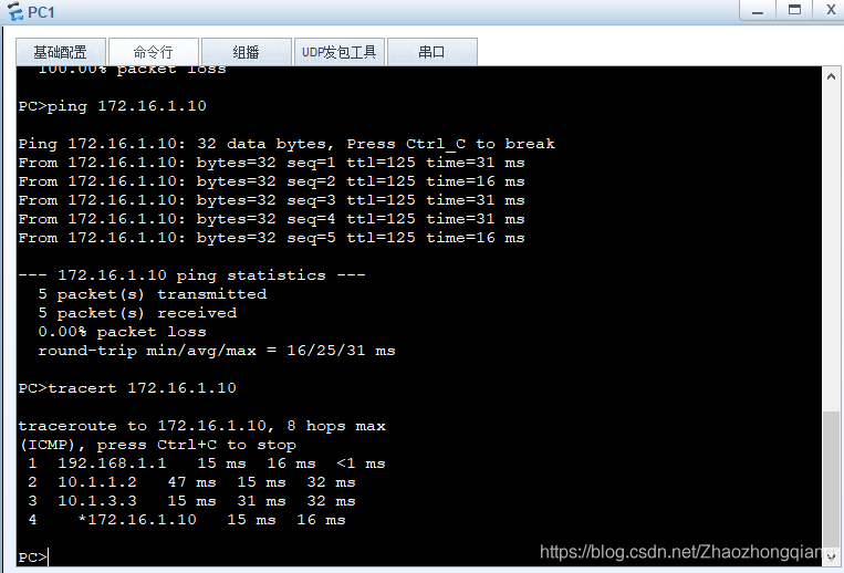 From 172.16.1.10: bytes=32 seq=5 ttl=125 time=16 ms