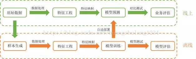 WeiFlow的诞生源自于微博机器学习的业务需求。在微博的机器学习工作流中(如图2所示),多种数据流经过实时数据处理,存储至特征工程并生成离线的原始样本。在离线系统,对原始样本进行各式各样的数据处理、特征处理、特征映射,从而生成训练样本;业务人员根据实际业务场景(排序、推荐),选择不同的算法模型,进行模型训练、预测、测试和评估;待模型迭代满足要求后,通过自动部署将模型文件和映射规则部署到线上。线上系统根据模型文件和映射规则,从特征工程中拉取相关特征,根据映射规则进行预处理,生成可用于预测的样本格式,进行线上实时预测,最终将预测结果(用户对微博内容的兴趣程度)输出,供线上服务调用。