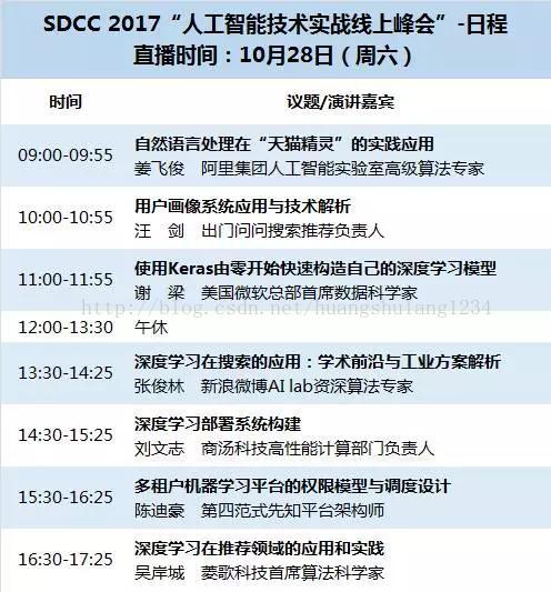 SDCC 2017“人工智能技术实战线上峰会”将在CSDN学院以直播互动的方式举行。