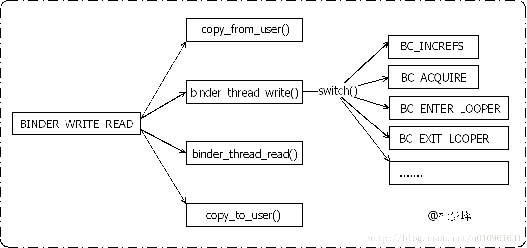 下面我们来分析ioctl的读操作: static int binder_thread_read(struct binder_proc *proc, struct binder_thread *thread, void __user *buffer, int size, signed long *consumed, int non_block) {