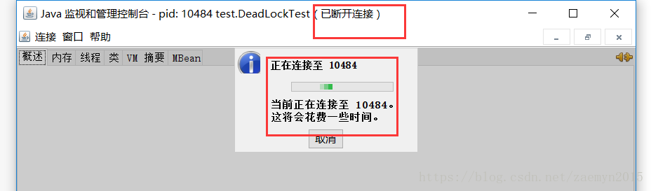 使用Jconsole(建议使用跟java应用一样的jdk)监控java应用时,可能出现连接不上或者一直在等待的问题,如下图: