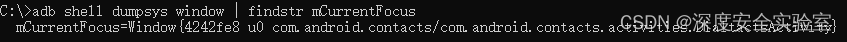 adb shell dumpsys windowadb shell dumpsys window -h用途一:获取当前活动的包名和类名adb shell dumpsys window | findstr mCurrentFocus版权声明:本文为pwp032984原创文章,遵循CC 4.0 BY-SA版权协议,转载请附上原文出处链接和本声明。原文链接:https://blog.csdn.net/pwp032984/article/details/122379012