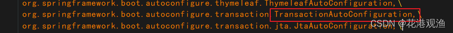 进入此文件我们可以看到,事务的自动装配配置类,当Springboot容器启动的时候,首先会扫描此文件,会自动为我们加载事务相关信息
