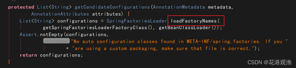 此方法中的loadFactoryNames方法, 就是加载所有的组件的全限类