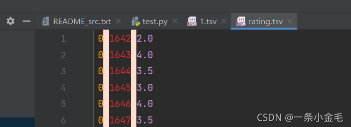该rating.tsv文件没有表头,逐行读取方法如下: