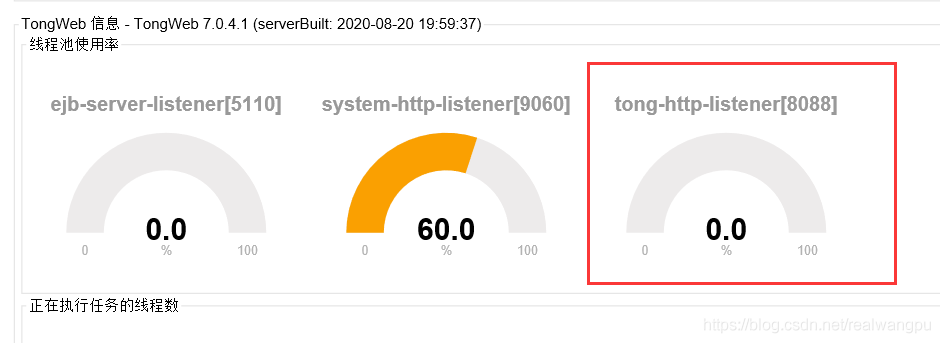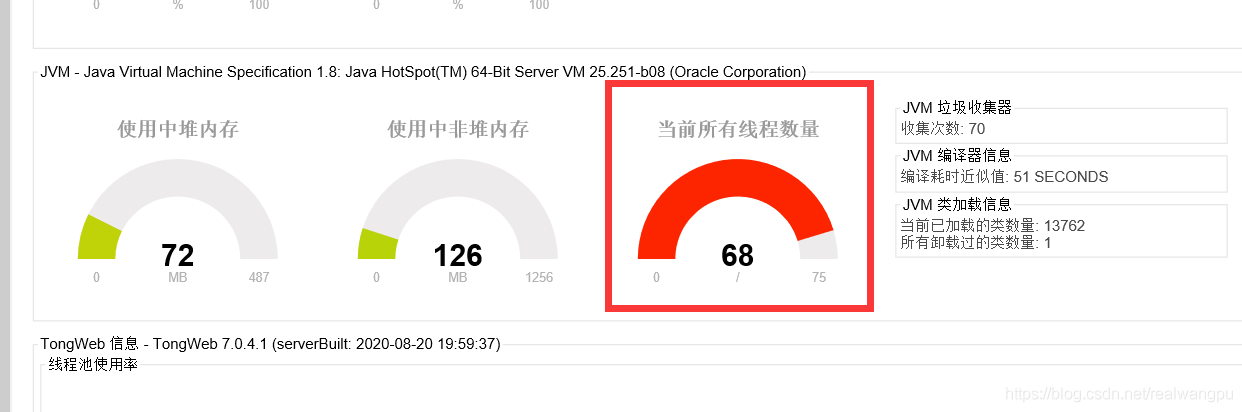 刚启动TongWeb时这两个方法返回的线程数相近,所以永远是红的。只有当TongWeb经历过线程高峰,线程回落后,这个图才不会为红色。