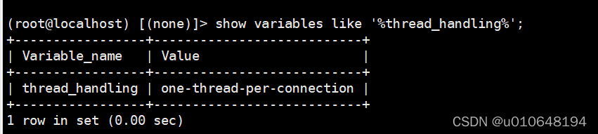 我们默认的线程处理方式是:one-thread-per-connection (服务器使用一个线程处理每个客户端连接),意思就是我们一个连接connection对应一个线程, 然后可以设置最大的connection连接数,max_connections。