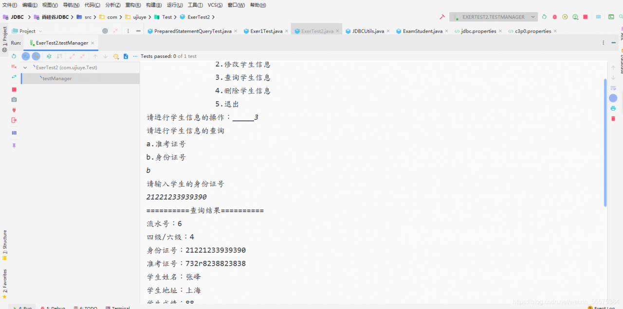 创建好了学生类之后,就是学生管理系统最核心的一个点,也就是使用JDBC连接数据库,