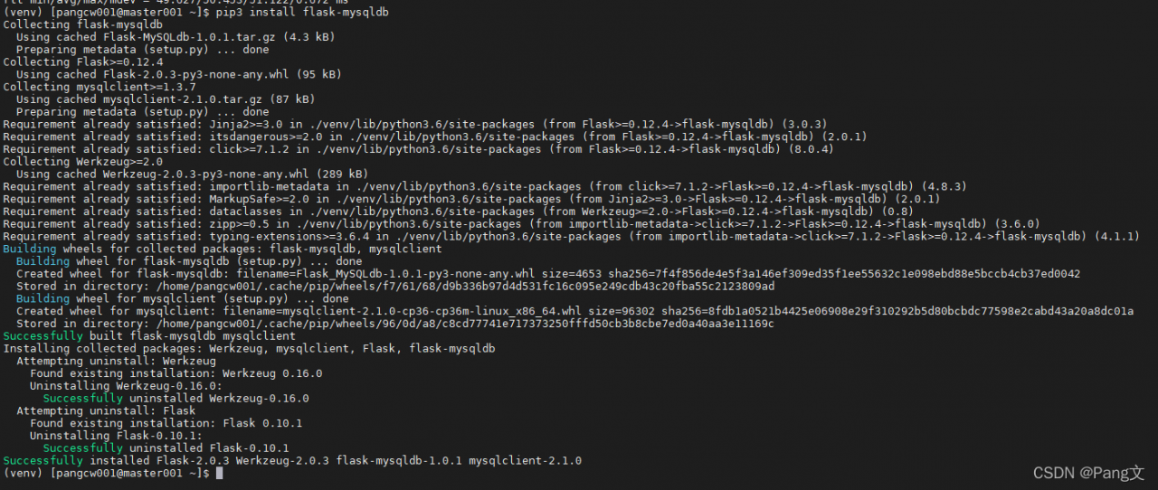 再去执行pip install flask-mysqldb 大功告成