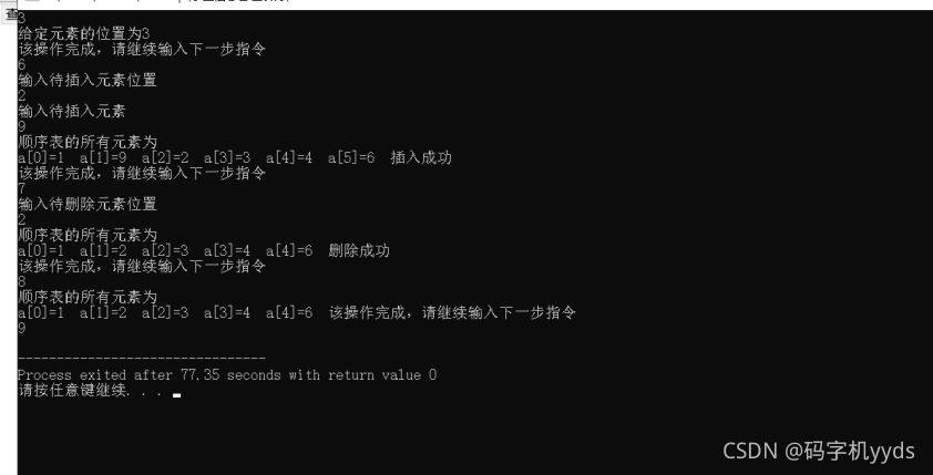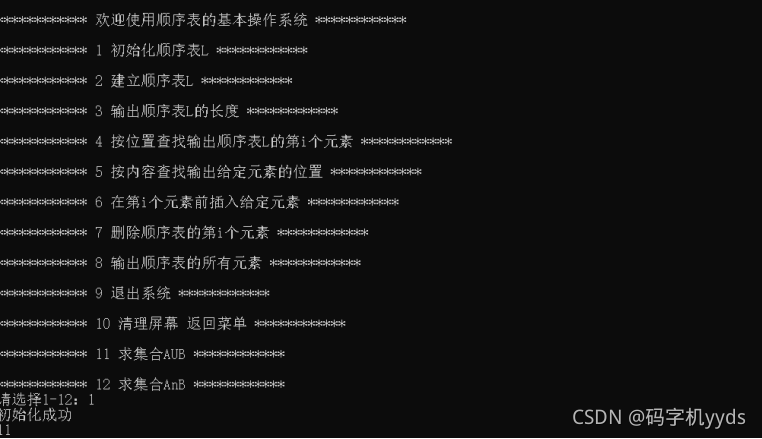 1、编写实现顺序表的基本算法(初始化、查找、插入、删除等)的函数,并在此基础上设计一个主程序完成如下功能: