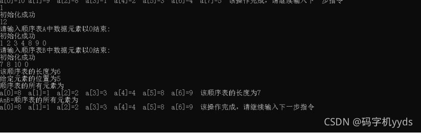 printf("请输入顺序表A中数据元素以0结束:\n");