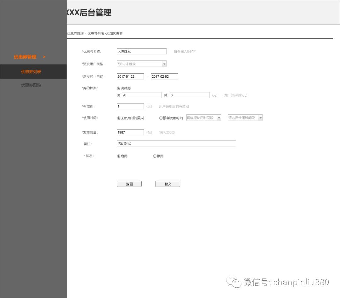 那我举个实际例子,看一下优惠券的前后台如何设计。
