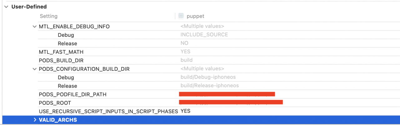 这个设置的意思是需要编译的有效架构。在Xcode 12中,该设置已经被弃用,但是还是会有某些第三方库在pod install或pod update时会写入这个设置。网上也有其他的一些做法,在VALID_ARCHS中修改架构,但我不推荐这么做。因为这个设置在Xcode 12中已被废弃,而且project本身和cocoapods中的每个库都有可能有该设置,一个个去改太过麻烦。不用担心删掉后会不会有什么问题,这个设置目的是指定编译的架构,删掉之后会根据默认的Standard Architecture选择编译架构。
