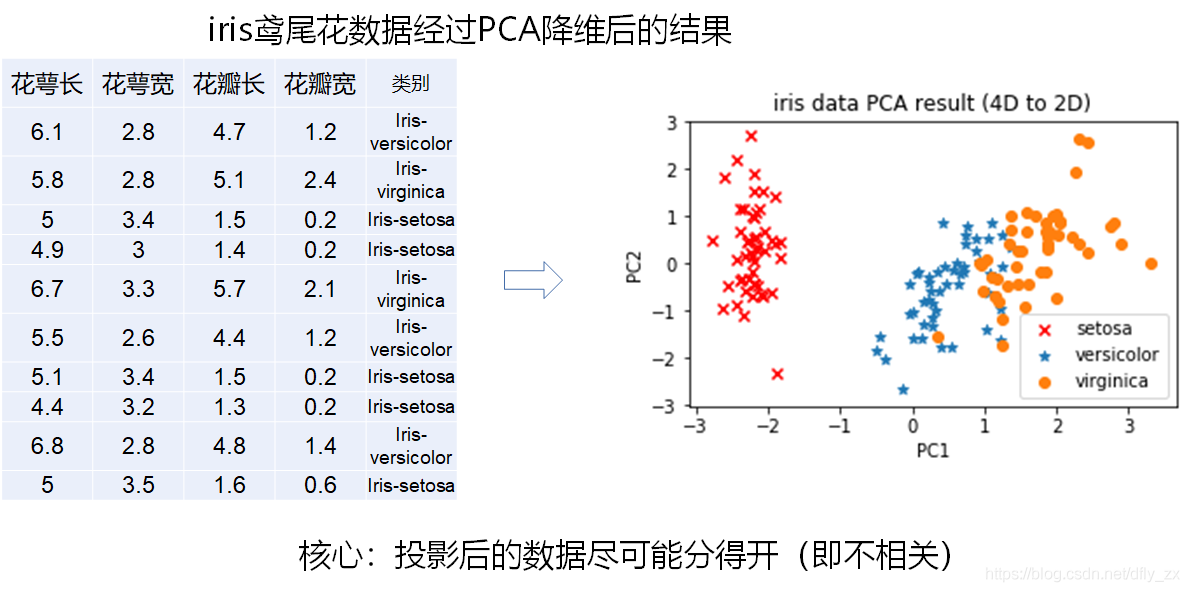 也称主分量分析,按照一定规则把数据变换到一个新的坐标系统中,使得任何数据投影后尽可能可以分开(新数据尽可能不相关、分布方差最大化)。