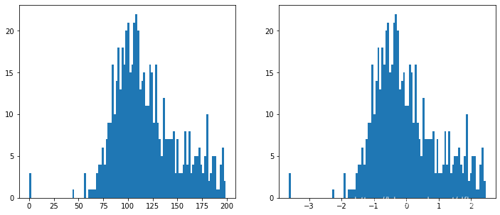 2、对数据进行标准化处理,选取glucose维度数据可视化处理后的效果;