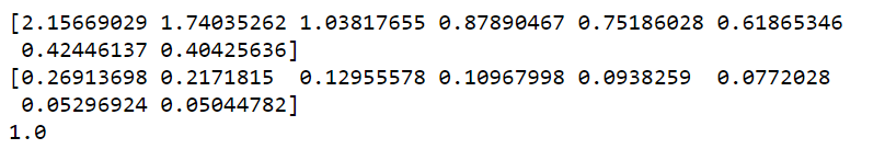 3、进行与原数据等维度PCA,查看各主成分的方差比例;