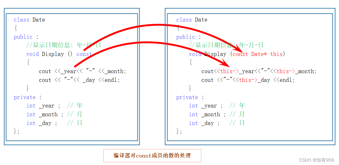 将const修饰的类成员函数成为const成员函数,const修饰的实际上是隐藏的this指针,表明该函数不能对类的任何成员进行修改。