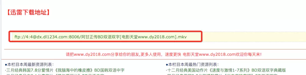 例如:电影天堂下载《阿甘正传》: