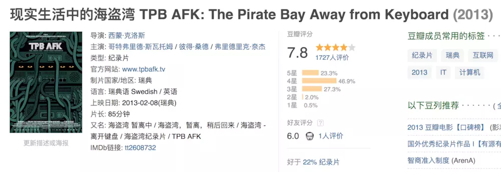 随着 BT 下载在全世界的风靡,也诞生了海盗湾这样的巨头,它是一个由瑞典的民间反版权组织海盗署成立于 2003 年的网站,号称拥有世界最大的 BT 种子服务器,提供海量的资源下载,而这些资源大多都是盗版的。