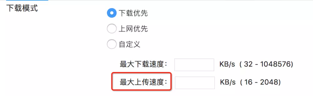 一般的 BT 客户端程序,默认设置都未对下载速度和上传速度进行限制,这是因为BT 软件会给上传速度较快的用户优先提供服务,也就是说上传速度越快,下载速度也越快,因此如果你带宽过剩的话,下载时就不要去限制上传速度了。