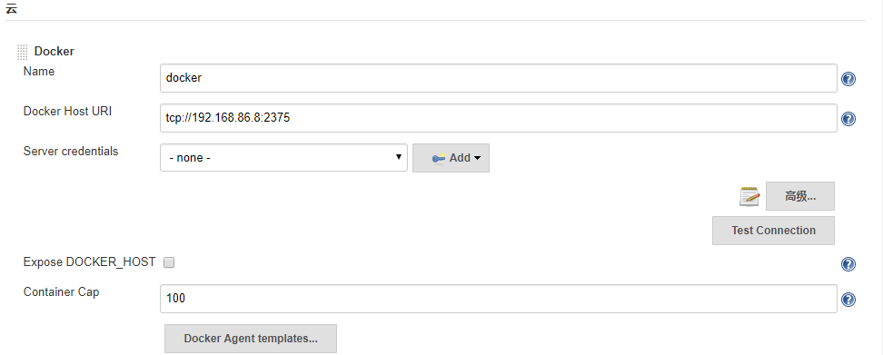 注意docker host url需要加上tcp://