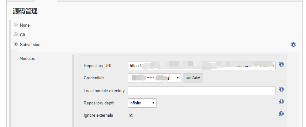 首先配置源码,可以是git或者svn,项目组用的是svn